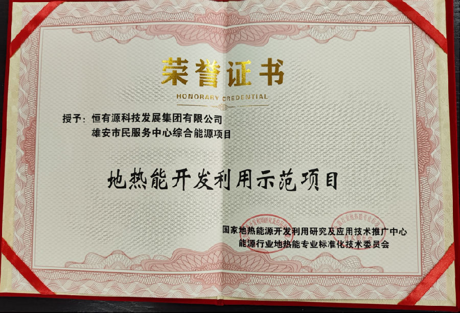 在评选中活动中,恒有源集团“雄安市民服务中心综合����� �������Ƴ����������� �������Ƴ������������ �������Ƴ������能源项目”荣获地热能开发����� �������Ƴ������������ �������Ƴ������������ �������Ƴ������利用示范项目称号。
